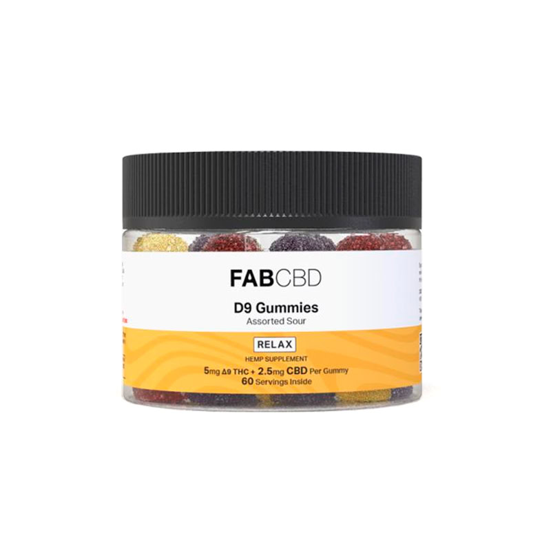 Fab CBD, D9 CBD Gummies, Assorted Sour, Full Spectrum, 60ct, 300mg THC + 150mg CBD