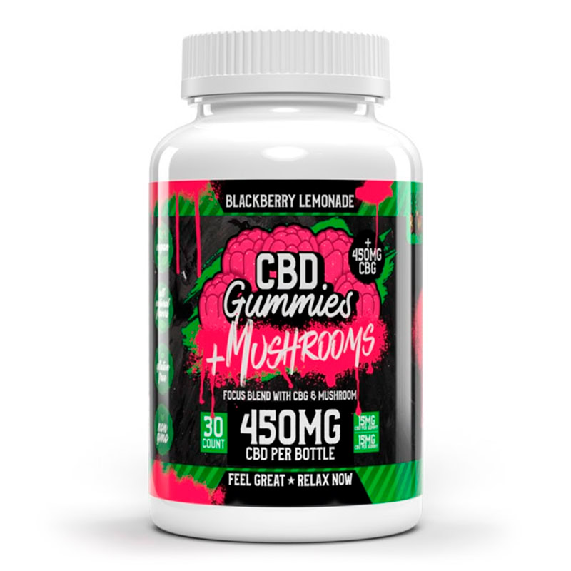 Hemp Bombs, Focus CBG + CBD Gummies with Mushrooms, Blackberry Lemonade, Isolate THC-Free, 30ct, 450mg CBD + 450mg CBG