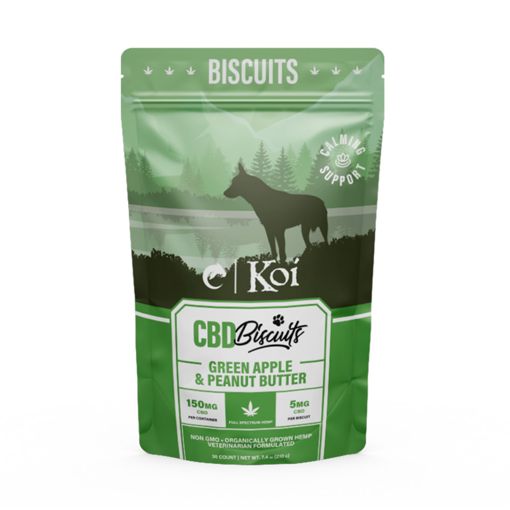 Koi Pets, Koi CBD Dog Biscuits Calming Support, Green Apple & Peanut Butter, Full Spectrum, 30ct, 150mg CBD