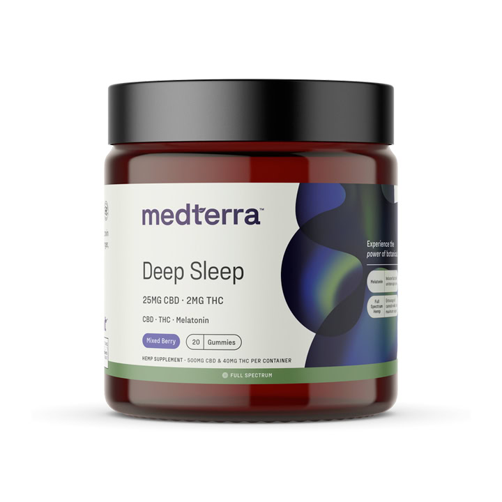 Medterra, Deep Sleep 25mg CBD + 2mg THC Gummies, Mixed Berry, Full Spectrum, 20ct, 40mg THC + 500mg CBD