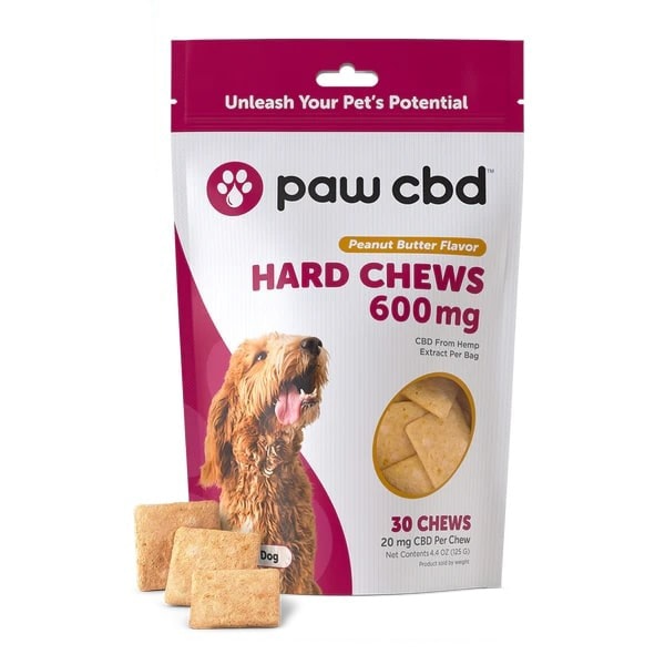 Paw CBD, Pet CBD Hard Chews for Large Dogs, Peanut Butter, Broad Spectrum THC-Free, 30ct, 600mg CBD