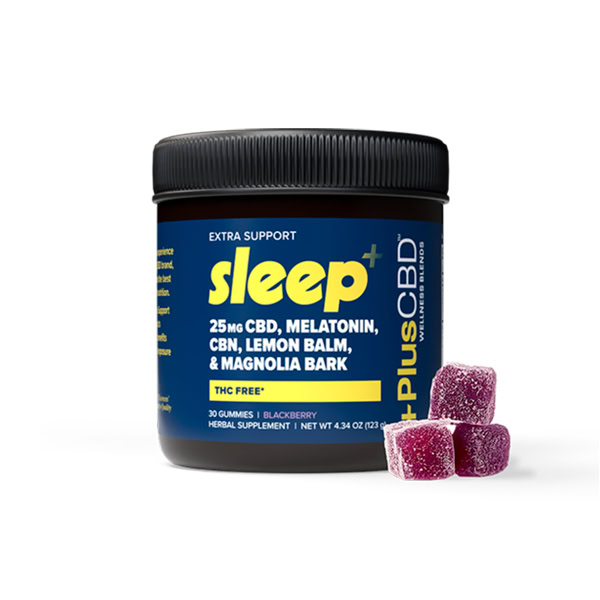 PlusCBD, Extra Support Sleep CBD Gummies, Blackberry, Isolate THC-Free, 30ct, 90mg CBN + 750mg CBD