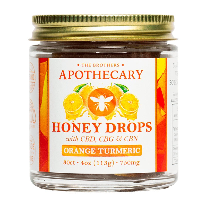 The Brothers Apothecary, Orange Turmeric Honey Drops CBD Gummies, Full Spectrum, 30ct, 150mg CBG + 150mg CBN + 450mg CBD