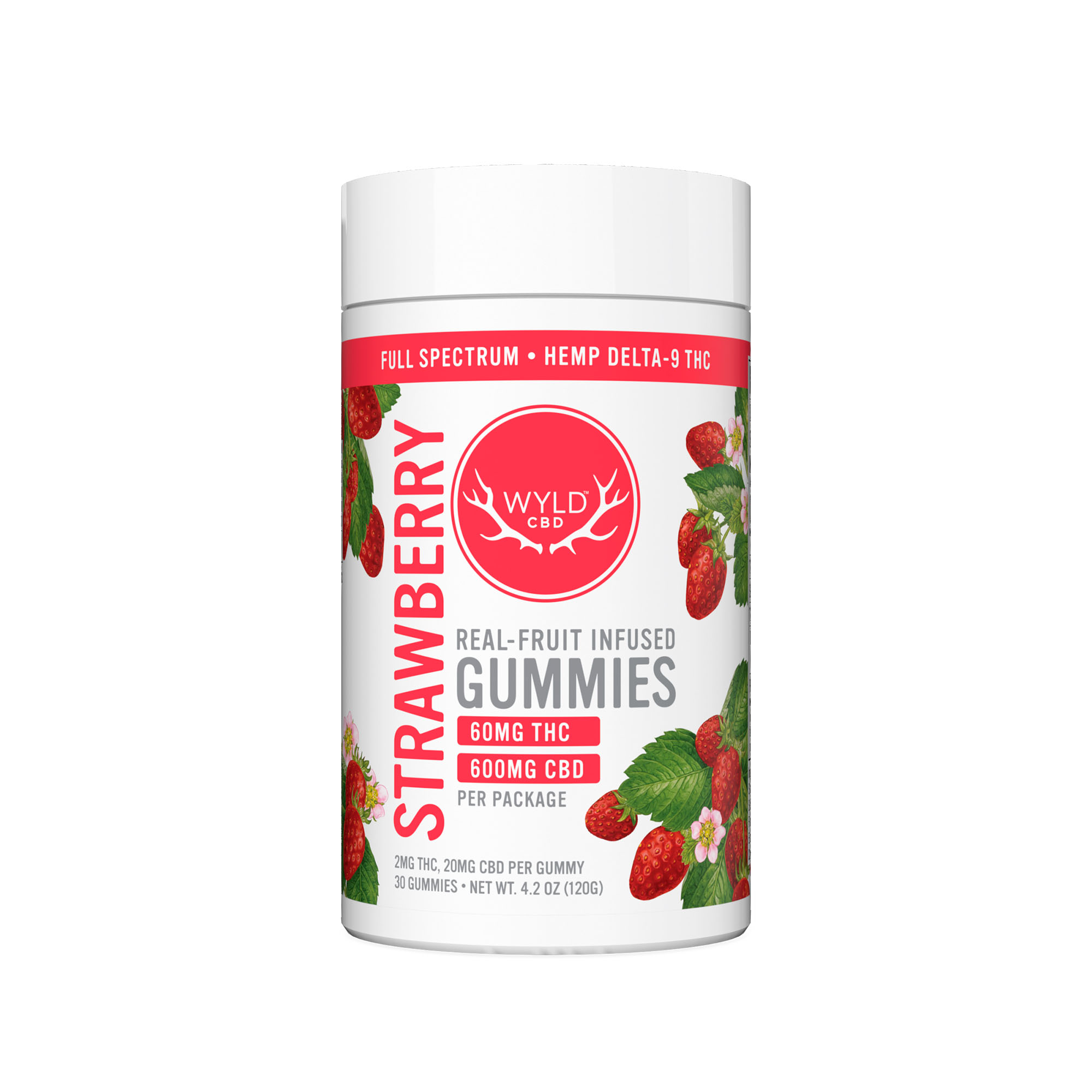 Wyld CBD, Strawberry Calm CBD+THC Gummies, Full Spectrum, 30ct, 60mg THC + 600mg CBD